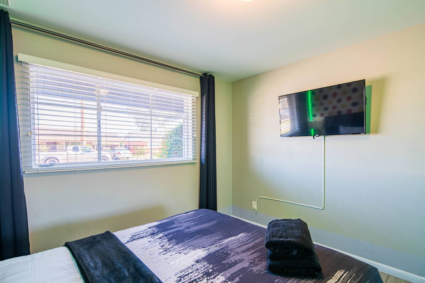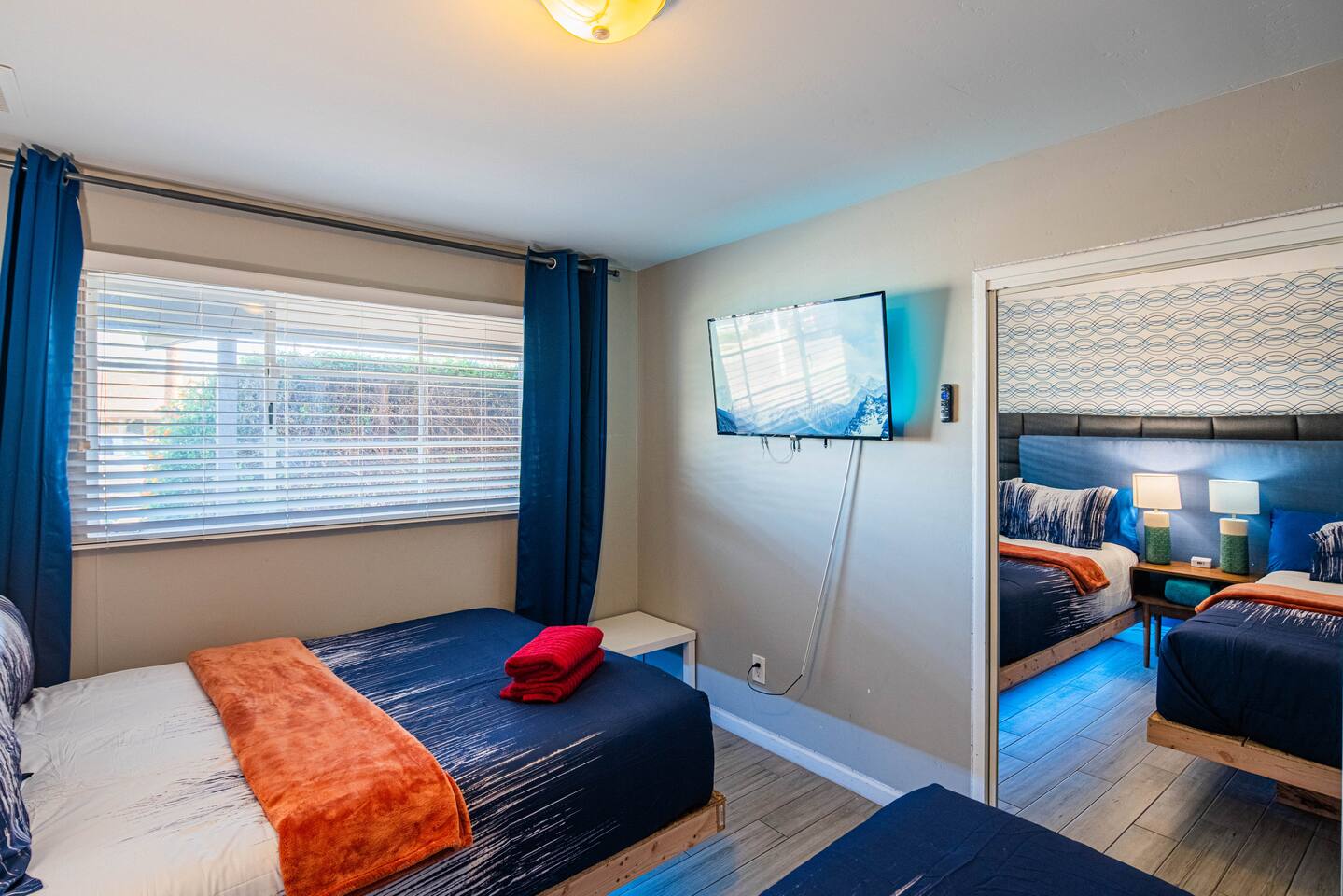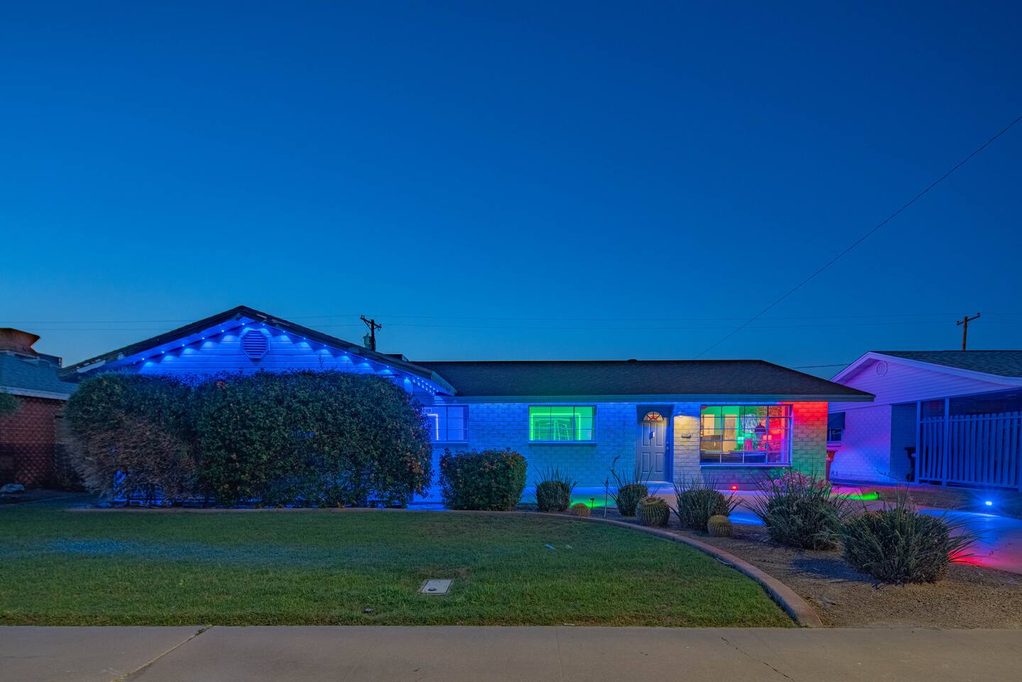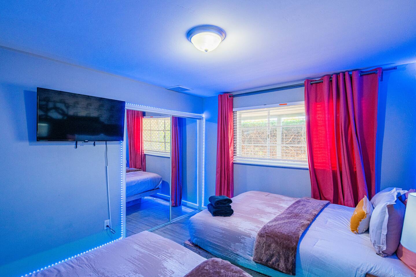 Experience our newly remodeled home with exceptional amenities and be among the first to stay. This 4-bedroom home sleeps 14 and has everything you need to relax and unwind. Cook, dine, lounge, and laugh together in bright, open spaces designed for good times, with lots of golfing and hiking within minutes. Every space is well equipped, crafted for comfort and relaxation, and available for short- and long-term stays. Perfect for families, friends, business travelers, and groups seeking an extraordinary Arizona getaway. Make our home your home! Reserve your stay today and create unforgettable memories! ✦Property Highlights✦ ✦ Outdoor Oasis → A Lush Green Wall with a swing door offers visibility into the pool, designed with parents in mind for added safety. → 5-Person LED Hot Tub with color-changing lights around the base and inside for a visually stunning soak. → 4-Person Dry Sauna with mood-enhancing exterior LED lighting, perfect for detoxing and relaxation. → A Floating Swing Daybed (1,600 lb capacity) seats 4–6 and is perfectly positioned between the RGB bar, hot tub, and 55" outdoor TV. → The stylish bench with a neon sign and grass wall is perfect for group photos and social content. → Rainforest decor, including framed jungle animals, LED ground lighting, and a playful glowing snake design around the TV (he’s friendly, promise!). → 96 Feet of RGB Lighting, hanging bulbs, and roof strip lights for a dynamic, relaxing ambiance. → Cooling Misters lower the temperature by up to 20°F and complete the rainforest “rain” vibe, even in peak summer. ✦ Pool → Color-Changing LED pool lighting for safe, stunning nighttime swims. → 45-Bulb RGB hanging Lights to illuminate the entire space and extend your time outdoors. → Outdoor dining bench for 6–8 guests. → 2 Red Chaise Loungers + Outdoor Daybed (seats 2–3) for sunbathing or stargazing. → Color-changing pool floaties, squirt guns, and ample beach towels for the pool, hot tub, and sauna. ✦ Gazebo Area → Propane BBQ Grill → Elegant Stone Fireplace to cozy up on chilly nights. → A 4-person couch and three stylish chairs for lounging. → Lit-Up Mini Golf Course with LED strips for nighttime play. → Full-Size Ping Pong Table with RGB lamps for evening matches. → 40” 4K Smart TV, ideally placed to catch sports or stream shows while enjoying the fire or the nearby putting green. ✦ Secret Outdoor Lounge (Master Room Area) → Enclosed Green Wall offers privacy for this tucked-away gem. → Features 4 Cowhide Chairs, 2 wooden side tables, and a mysterious treasure chest—who knows what’s inside? ✦ Living + Dining → 50” Smart TV → Sleeper Options: Pull-out couch (sleeps 2) and a futon (sleeps 1). → PlayStation + subscription (stream and play games without bringing your own) → Nintendo Switch with 4 controllers + popular games like Smash Bros., Mario Kart, and Mario Wonder. → Open Layout with a vibrant mural and a 6-seat wooden dining table set against a stylish backdrop of white cabinets and a dark stone backsplash. ✦ Kitchen → A fully equipped Kitchen includes a stainless steel refrigerator, an island prep area, a washer/dryer, and a K-Cup coffee machine for quick morning brews. → Color-Changing Lighting for fun, customizable ambiance. ✦ Bedrooms (Sleeps 12) → 4 stylish bedrooms with 6 queen beds → All Rooms Include: → Floating bed frames with LED lighting → Ceiling mood lighting → Smart TVs with LED backlights → Closets, lamps, and charging stations ✦ Bathrooms → 2 Modern style bathrooms with color-changing rainfall showerheads ✦ Parking → Covered carport + driveway (fits 3), safe street parking → RGB-lit entrance and glowing night ambiance