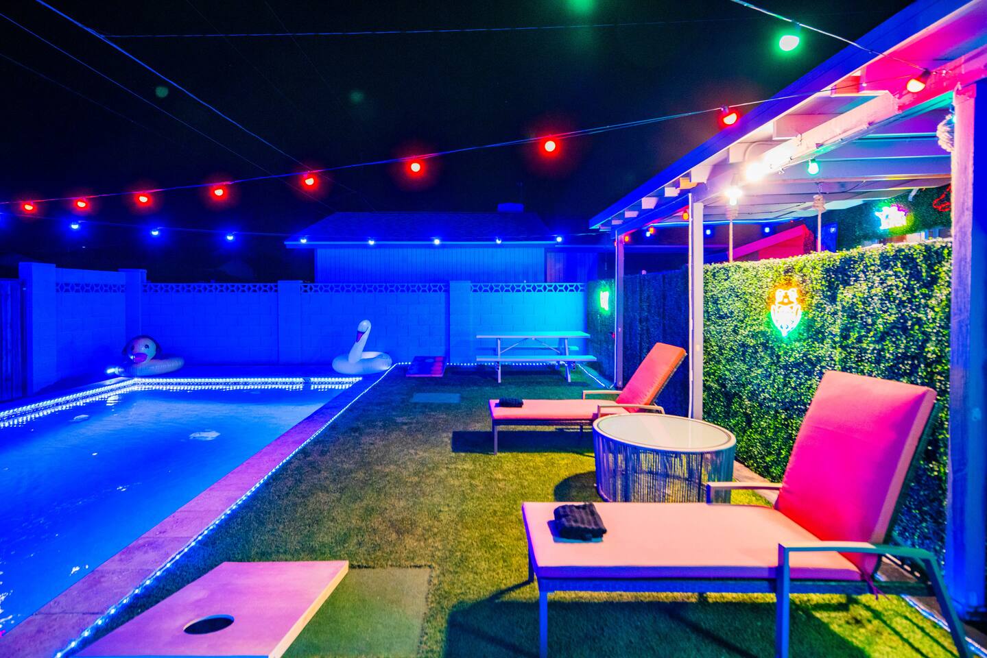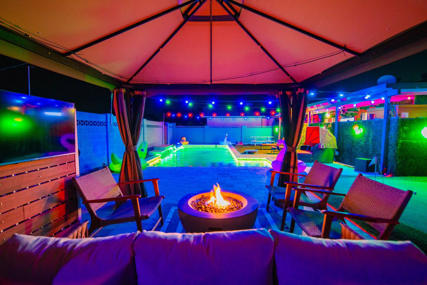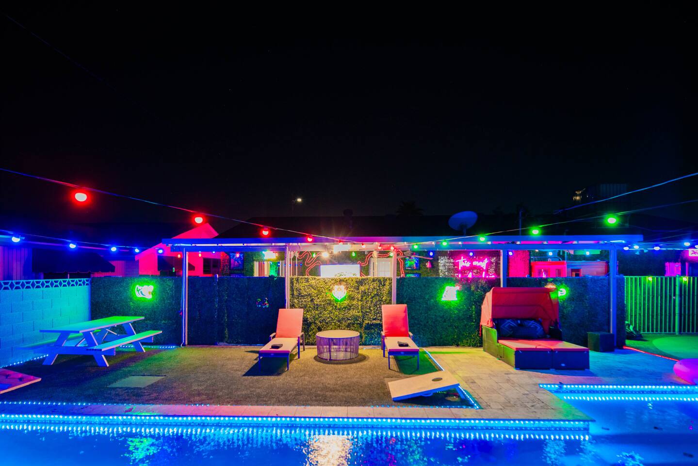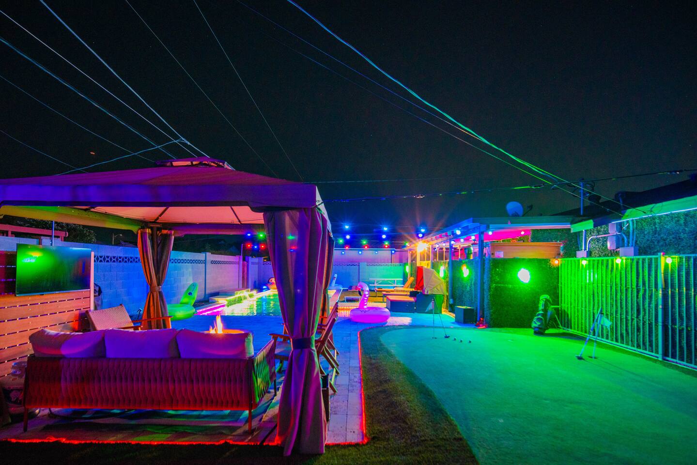 Our Scottsdale home offers a truly unique, resort-style experience designed for relaxation, fun, and unforgettable memories. Guests are welcomed into a newly remodeled 4-bedroom retreat with vibrant decor, mood lighting, and standout amenities, including a private pool, hot tub, dry sauna, putting green, ping pong table, gazebo, and a floating swing daybed. We’ve created a space that feels both luxurious and playful, from rainforest-inspired decor and RGB lighting to gaming consoles and cozy fire pits. Whether it’s enjoying a color-changing soak, stargazing on the sun loungers, or snapping photos by the neon-lit bench, there’s something special around every corner. To make guests feel more welcome, we’ve thought through every detail, from curated seating areas and game-ready living spaces to fully equipped kitchens and smart TVs in every room. It's more than just a stay. It’s an experience made for connection, comfort, and fun.