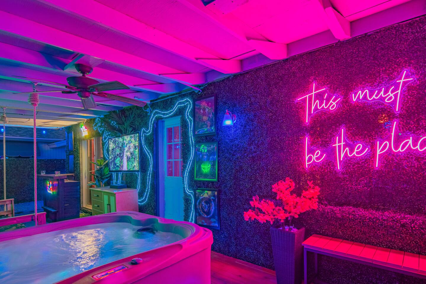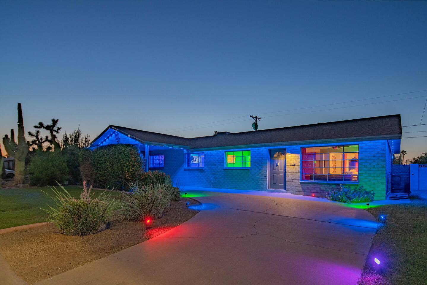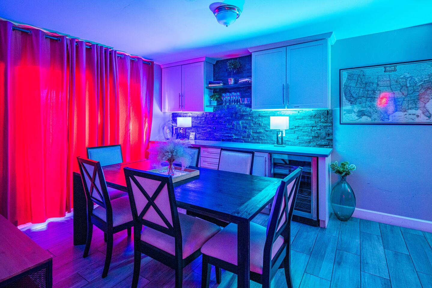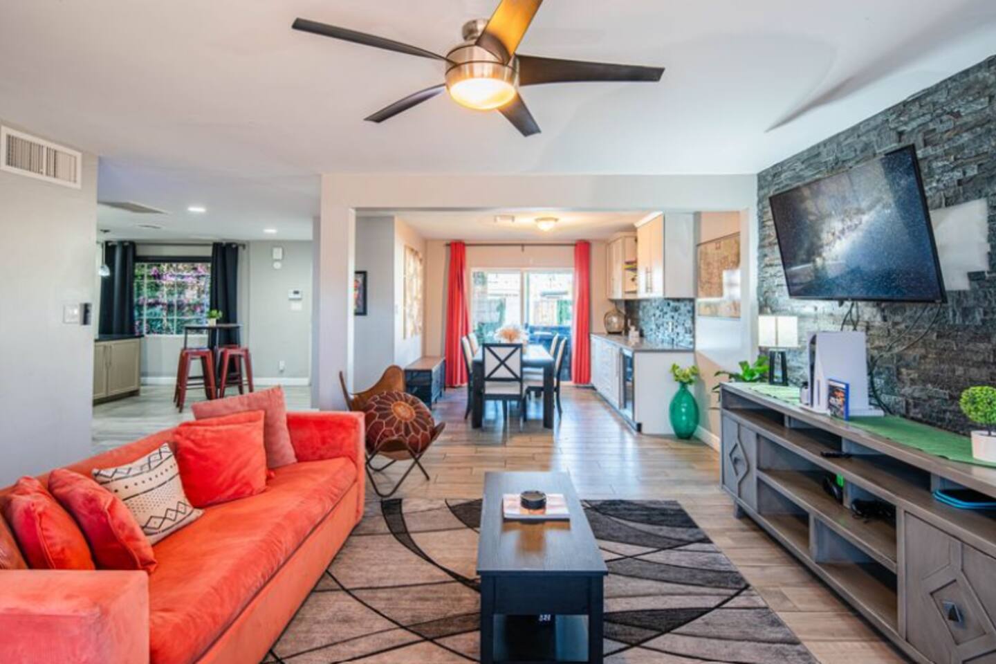 Our Scottsdale home offers a truly unique, resort-style experience designed for relaxation, fun, and unforgettable memories. Guests are welcomed into a newly remodeled 4-bedroom retreat with vibrant decor, mood lighting, and standout amenities, including a private pool, hot tub, dry sauna, putting green, ping pong table, gazebo, and a floating swing daybed. We’ve created a space that feels both luxurious and playful, from rainforest-inspired decor and RGB lighting to gaming consoles and cozy fire pits. Whether it’s enjoying a color-changing soak, stargazing on the sun loungers, or snapping photos by the neon-lit bench, there’s something special around every corner. To make guests feel more welcome, we’ve thought through every detail, from curated seating areas and game-ready living spaces to fully equipped kitchens and smart TVs in every room. It's more than just a stay. It’s an experience made for connection, comfort, and fun.