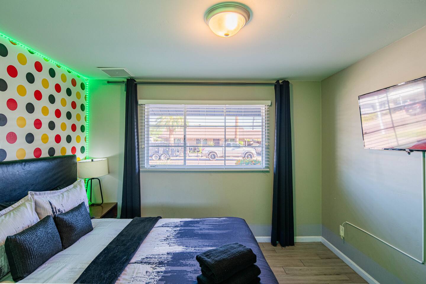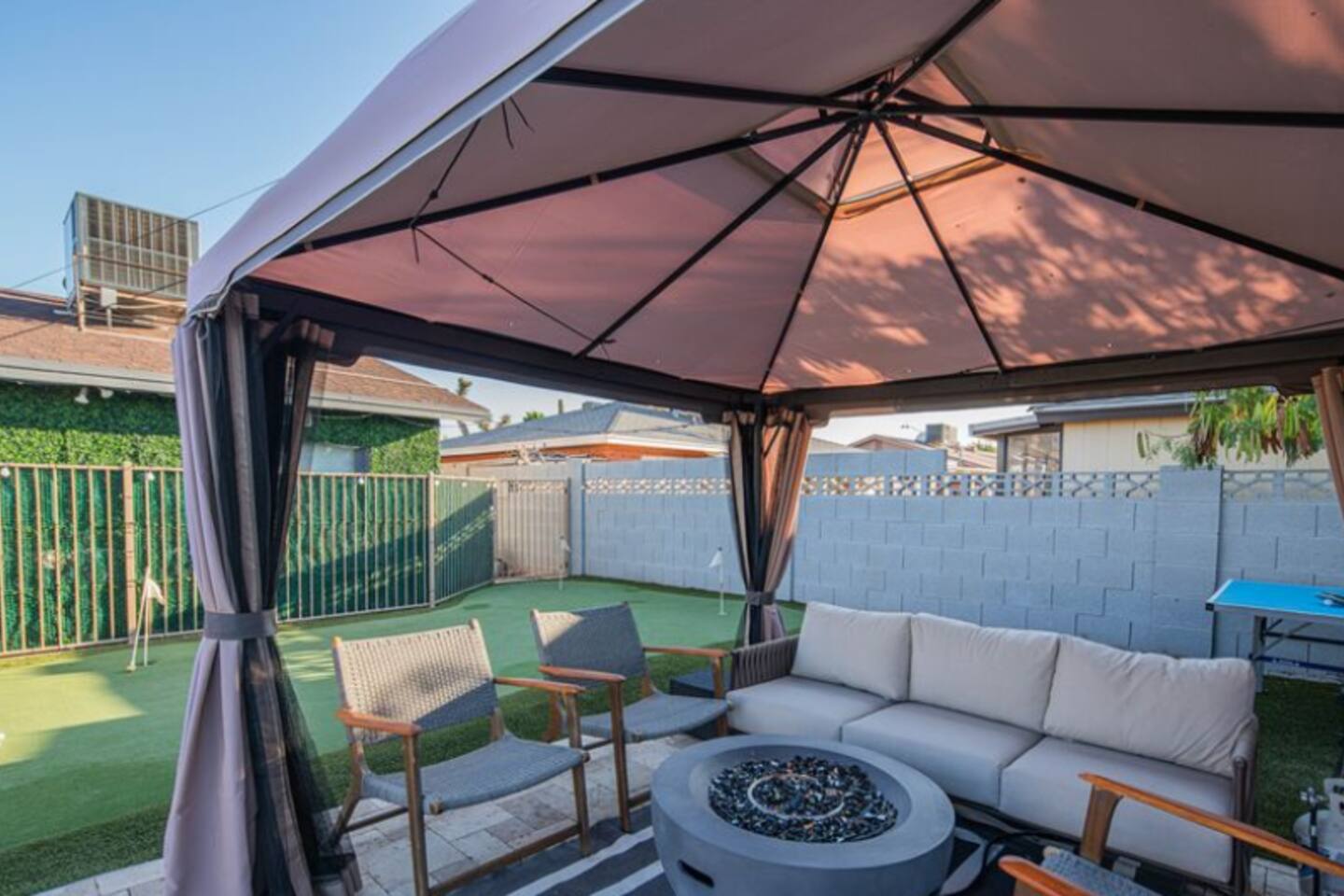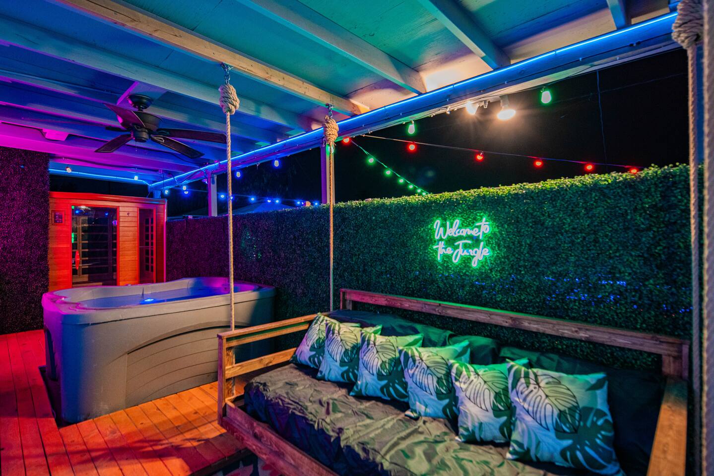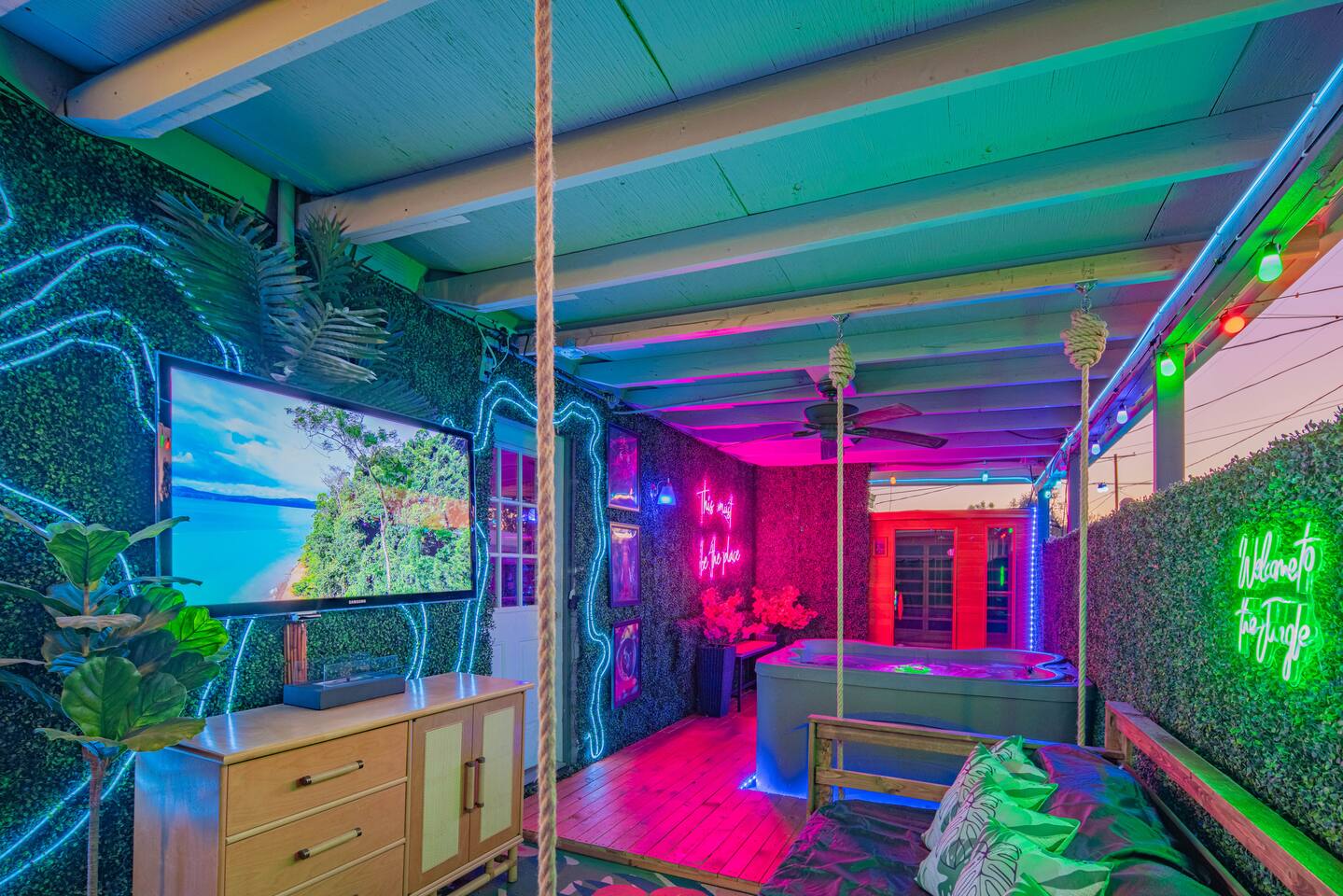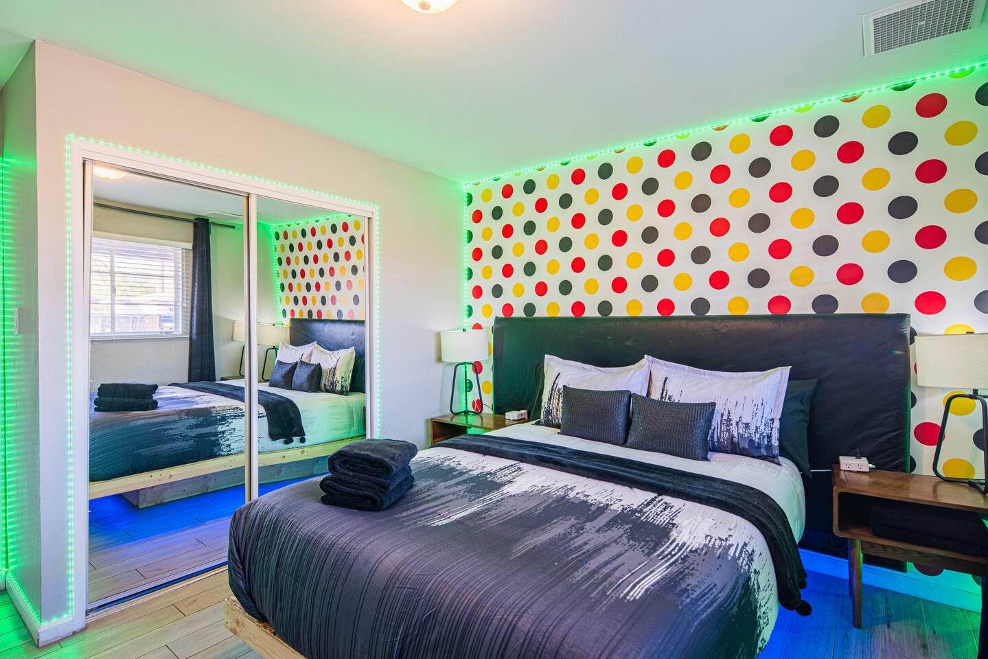 Our Scottsdale home offers a truly unique, resort-style experience designed for relaxation, fun, and unforgettable memories. Guests are welcomed into a newly remodeled 4-bedroom retreat with vibrant decor, mood lighting, and standout amenities, including a private pool, hot tub, dry sauna, putting green, ping pong table, gazebo, and a floating swing daybed. We’ve created a space that feels both luxurious and playful, from rainforest-inspired decor and RGB lighting to gaming consoles and cozy fire pits. Whether it’s enjoying a color-changing soak, stargazing on the sun loungers, or snapping photos by the neon-lit bench, there’s something special around every corner. To make guests feel more welcome, we’ve thought through every detail, from curated seating areas and game-ready living spaces to fully equipped kitchens and smart TVs in every room. It's more than just a stay. It’s an experience made for connection, comfort, and fun.