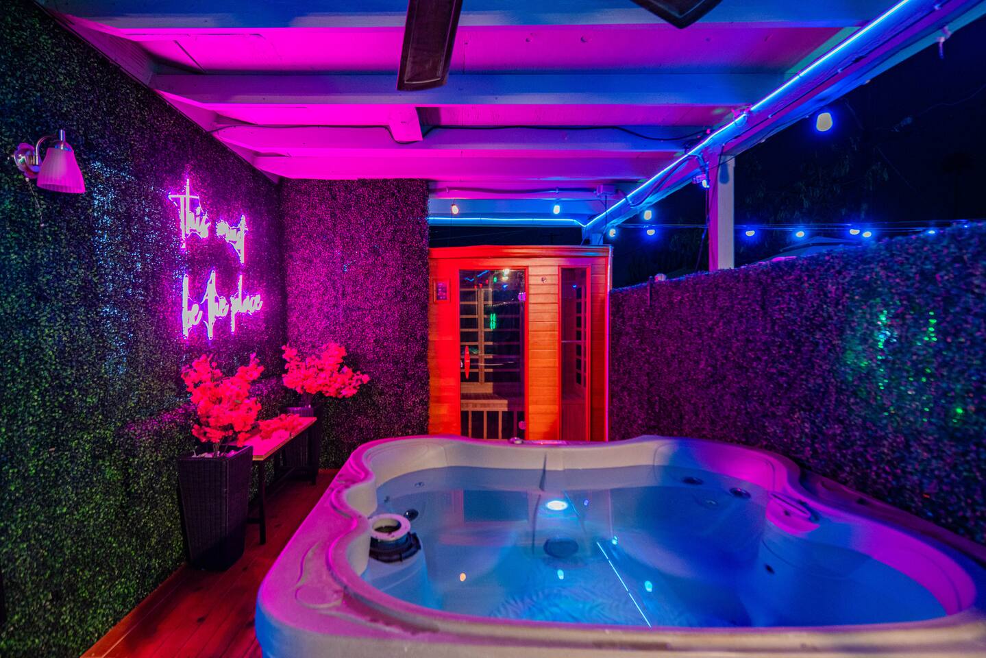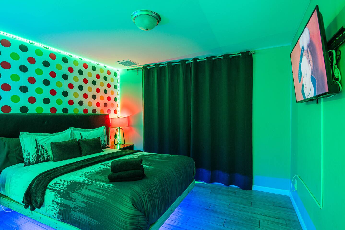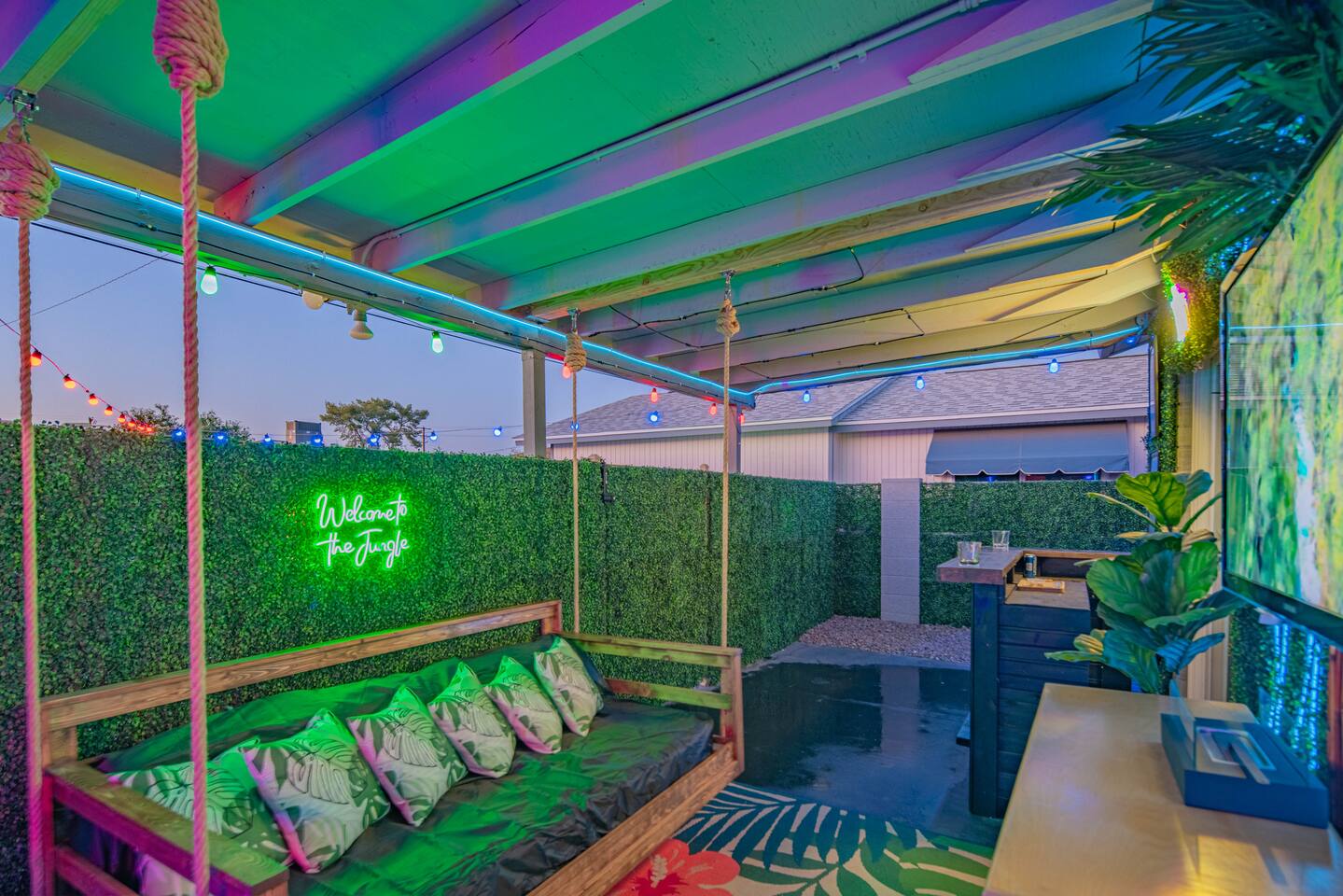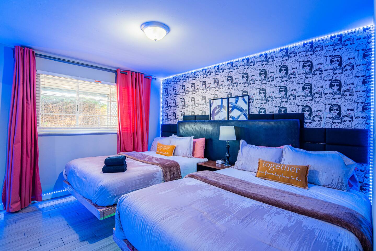 Our Scottsdale home offers a truly unique, resort-style experience designed for relaxation, fun, and unforgettable memories. Guests are welcomed into a newly remodeled 4-bedroom retreat with vibrant decor, mood lighting, and standout amenities, including a private pool, hot tub, dry sauna, putting green, ping pong table, gazebo, and a floating swing daybed. We’ve created a space that feels both luxurious and playful, from rainforest-inspired decor and RGB lighting to gaming consoles and cozy fire pits. Whether it’s enjoying a color-changing soak, stargazing on the sun loungers, or snapping photos by the neon-lit bench, there’s something special around every corner. To make guests feel more welcome, we’ve thought through every detail, from curated seating areas and game-ready living spaces to fully equipped kitchens and smart TVs in every room. It's more than just a stay. It’s an experience made for connection, comfort, and fun.