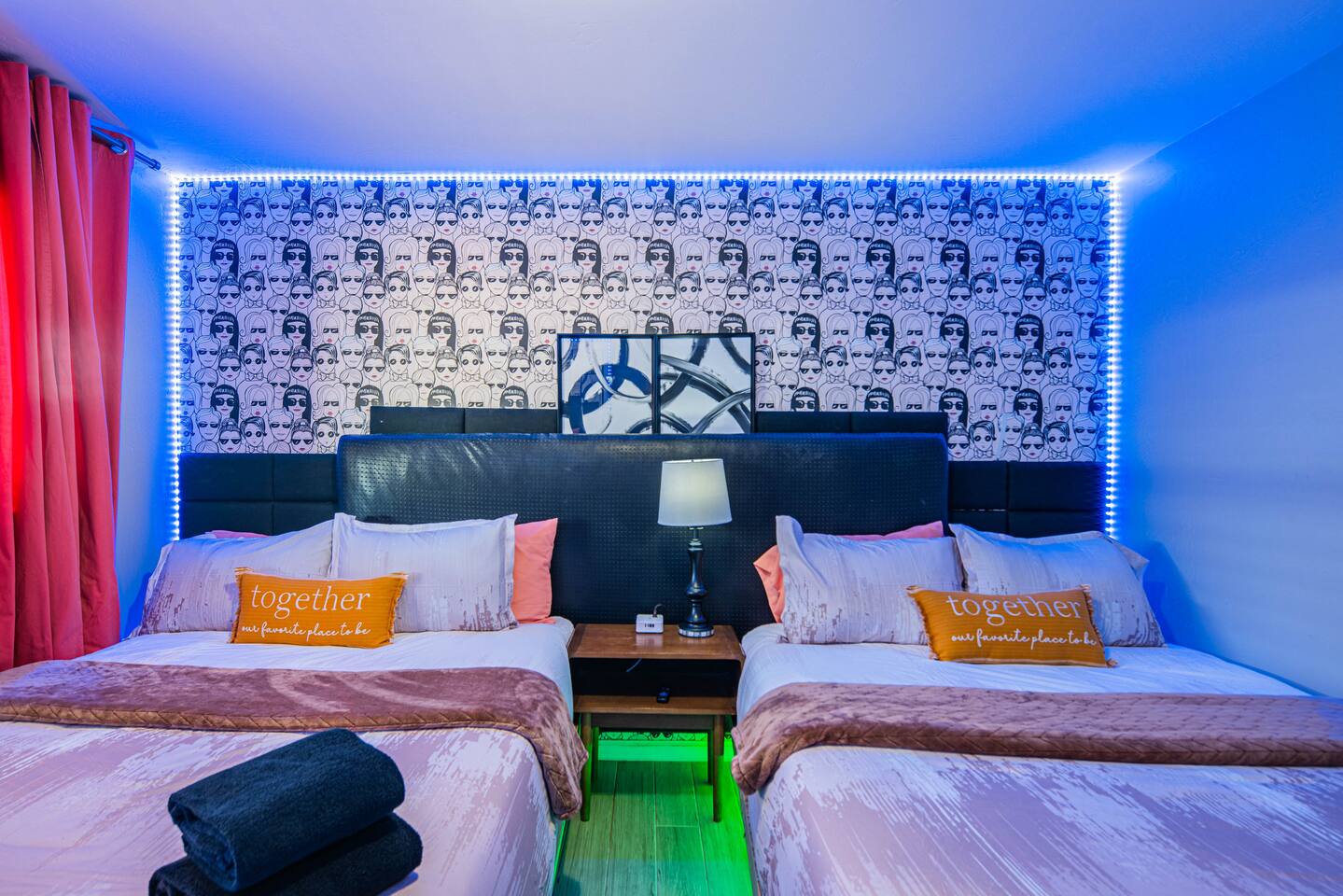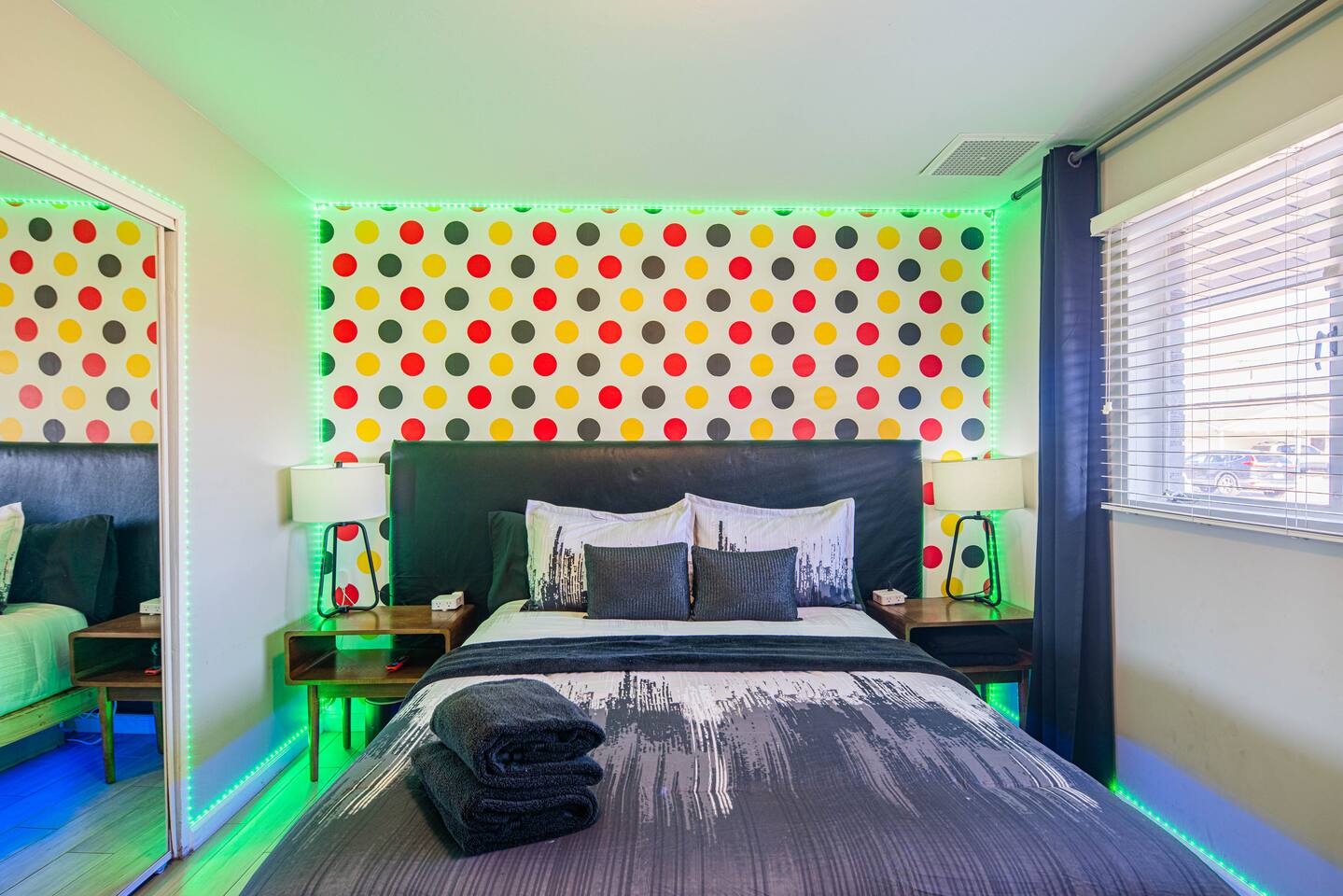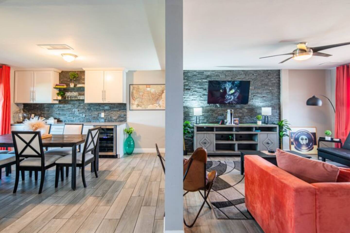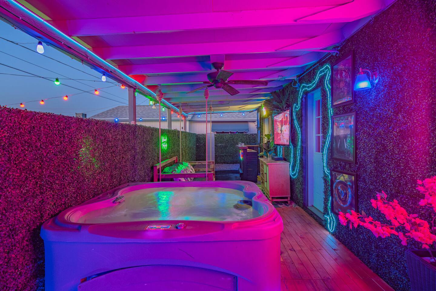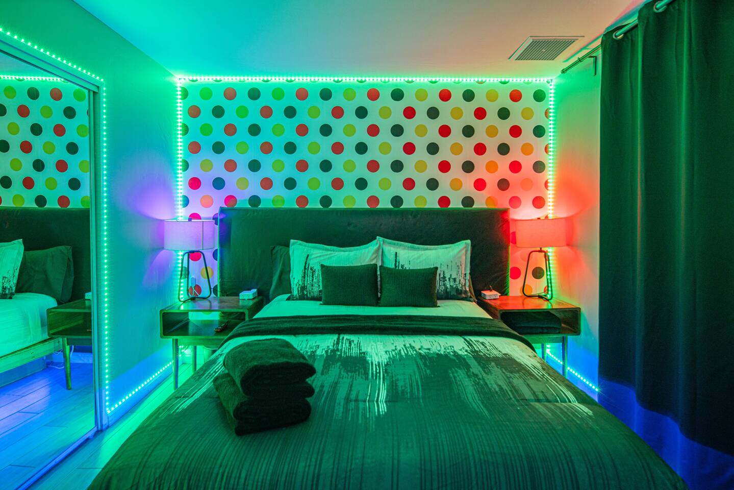 Our Scottsdale home offers a truly unique, resort-style experience designed for relaxation, fun, and unforgettable memories. Guests are welcomed into a newly remodeled 4-bedroom retreat with vibrant decor, mood lighting, and standout amenities, including a private pool, hot tub, dry sauna, putting green, ping pong table, gazebo, and a floating swing daybed. We’ve created a space that feels both luxurious and playful, from rainforest-inspired decor and RGB lighting to gaming consoles and cozy fire pits. Whether it’s enjoying a color-changing soak, stargazing on the sun loungers, or snapping photos by the neon-lit bench, there’s something special around every corner. To make guests feel more welcome, we’ve thought through every detail, from curated seating areas and game-ready living spaces to fully equipped kitchens and smart TVs in every room. It's more than just a stay. It’s an experience made for connection, comfort, and fun.