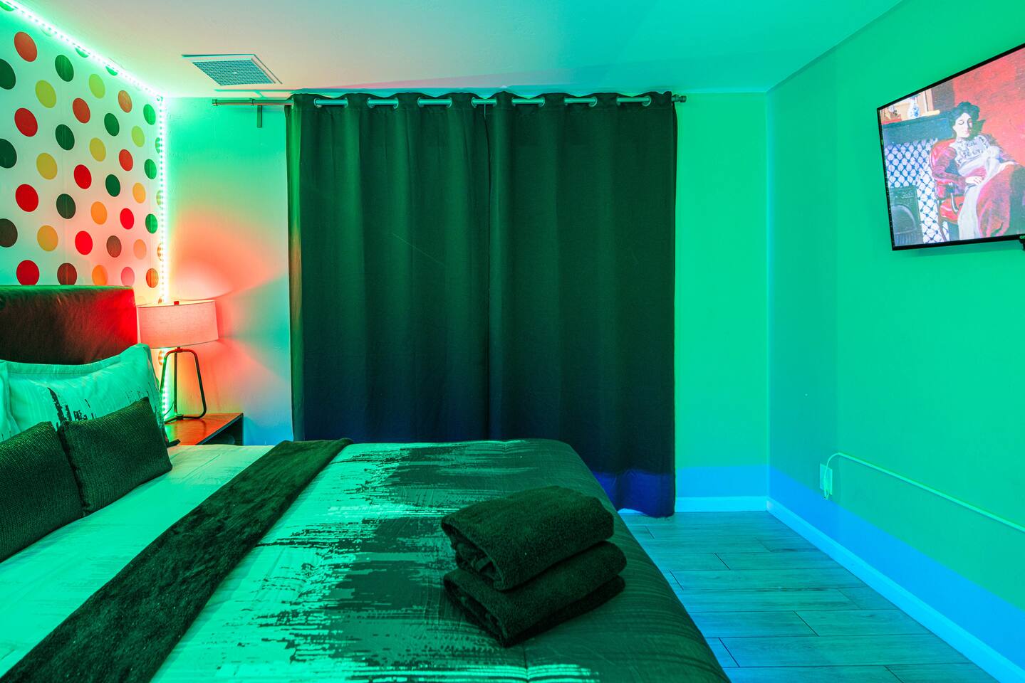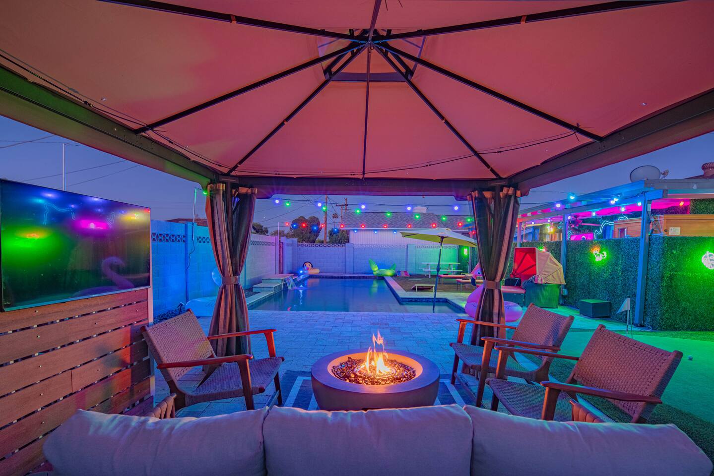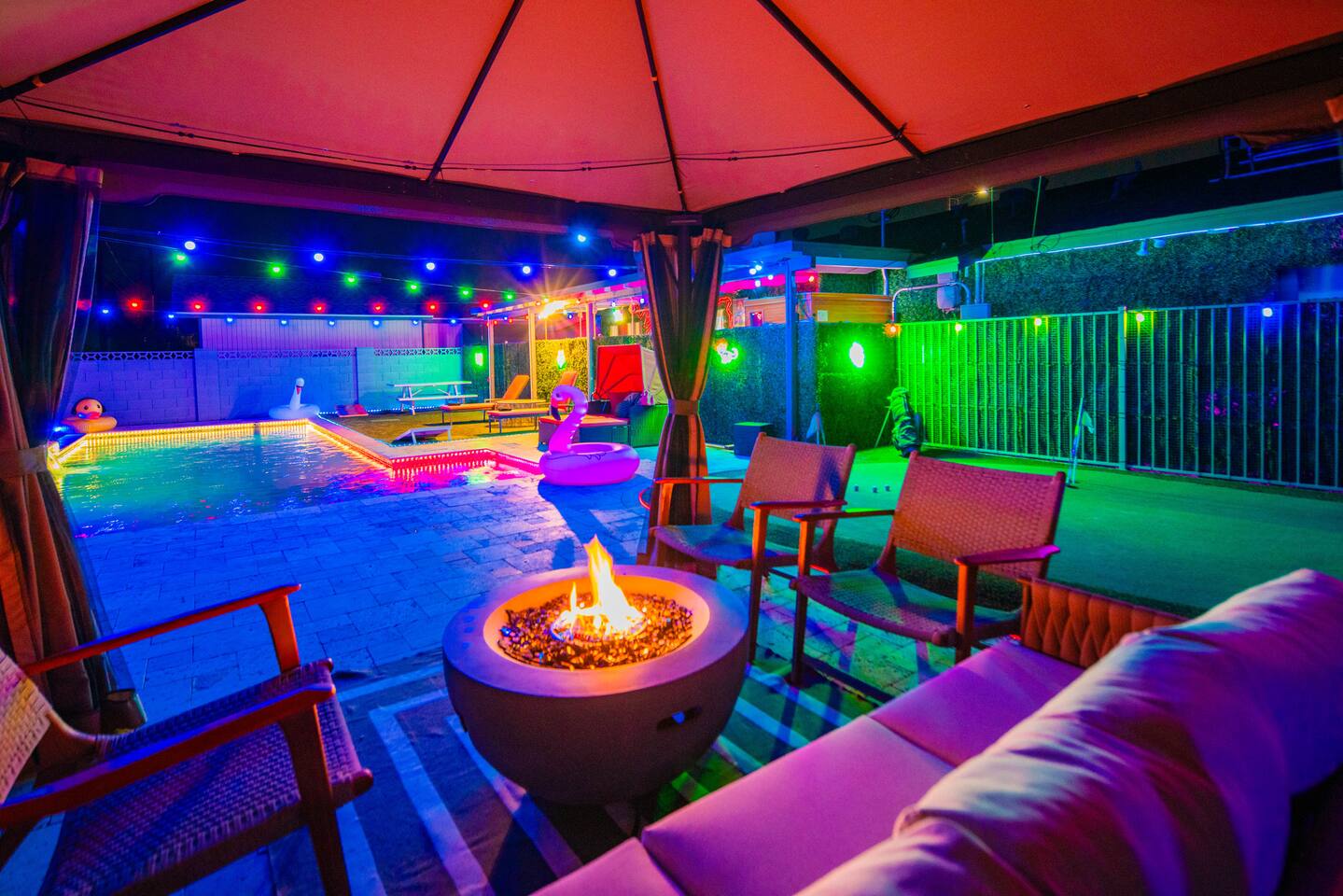 We're honored to host you and committed to making your stay exceptional. To help create the perfect atmosphere for all our guests, we've put together a few simple guidelines: → Parties or large gatherings are not permitted. → Quiet hours start at 10 PM, so everyone can unwind peacefully → Feel free to enjoy the outdoor TVs – just flip them off when you're done → The misters are perfect for cooling off – just switch them off when you head inside → The floating bed frame lights create an amazing ambiance, so we always keep them on for that magical glow → You may turn off the ceiling RGB strip lights, but do not change their colors. → Our outdoor lighting system is perfectly calibrated, and we handle all the settings to keep everything running smoothly. ✱Pet Policy✱ Pets are welcome with a $500 non-refundable pet fee. Guests must clean up after their pets, keep them off furniture, and never leave them unattended at any time. Thanks for helping us create an incredible experience for everyone! We can't wait to welcome you!😊
